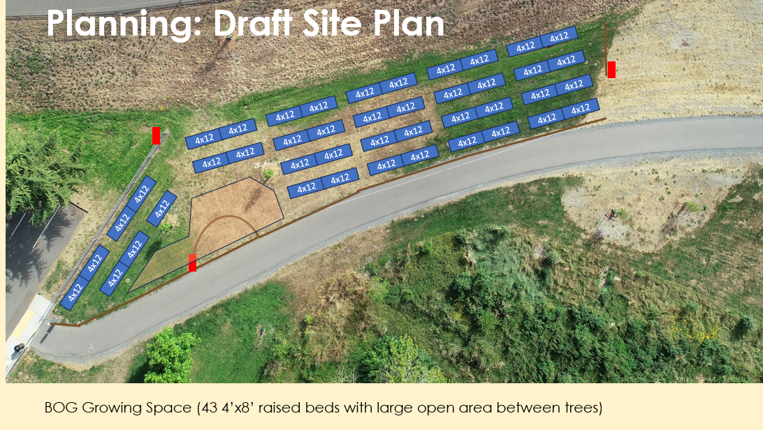 The cost of installing 40+ raised beds are high, and development may occur in stages as fundraising progresses.